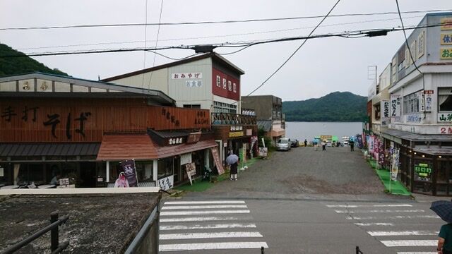 登山口からバス停までは歩いて3分でつきました。バス停近くは大沼の辺りでトイレがあったり、食事処やお土産屋が点在しています。